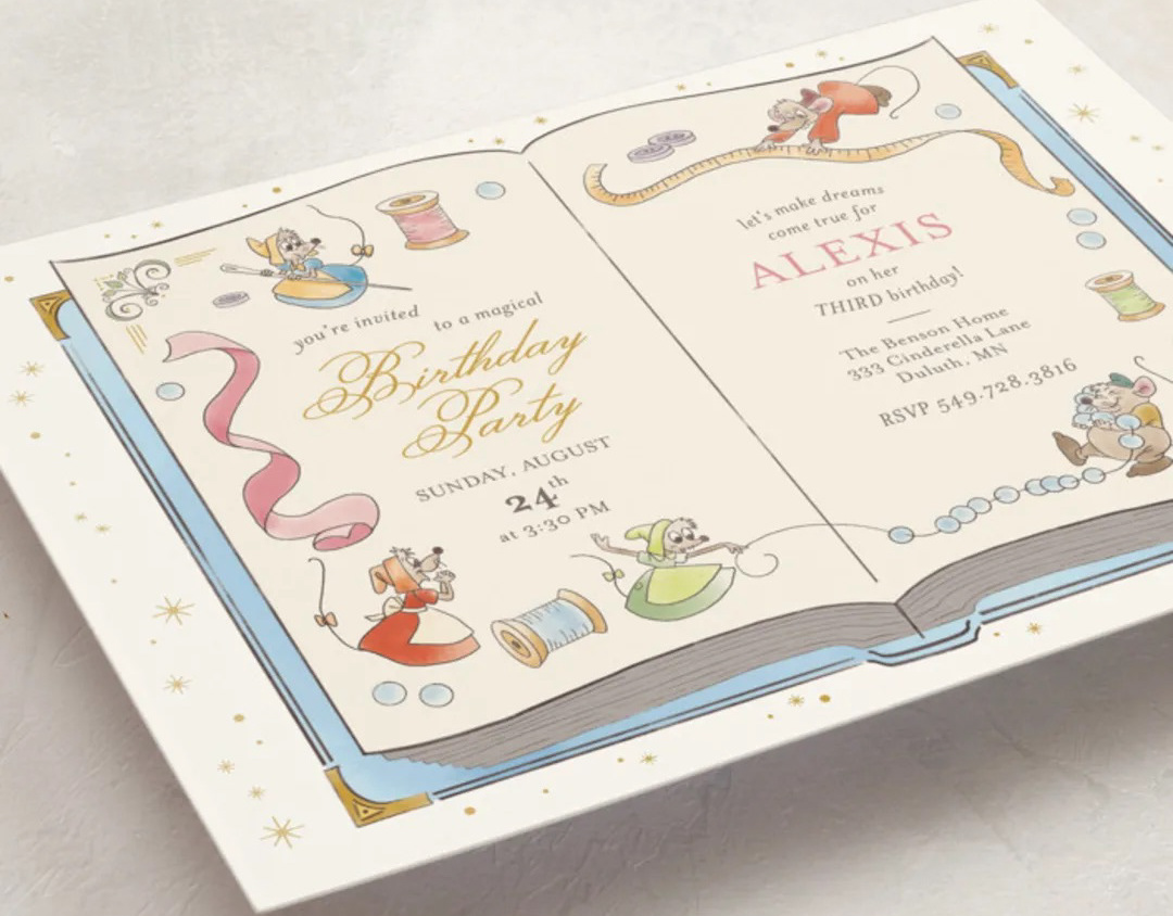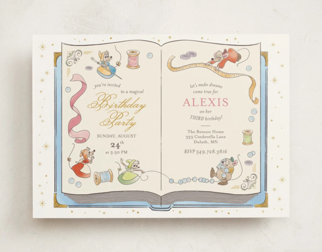 Minted and ©Disney custom stationery with Disney's Cinderella watercolor hand drawn illustrations by Janelle Wourms of Three Wings North.